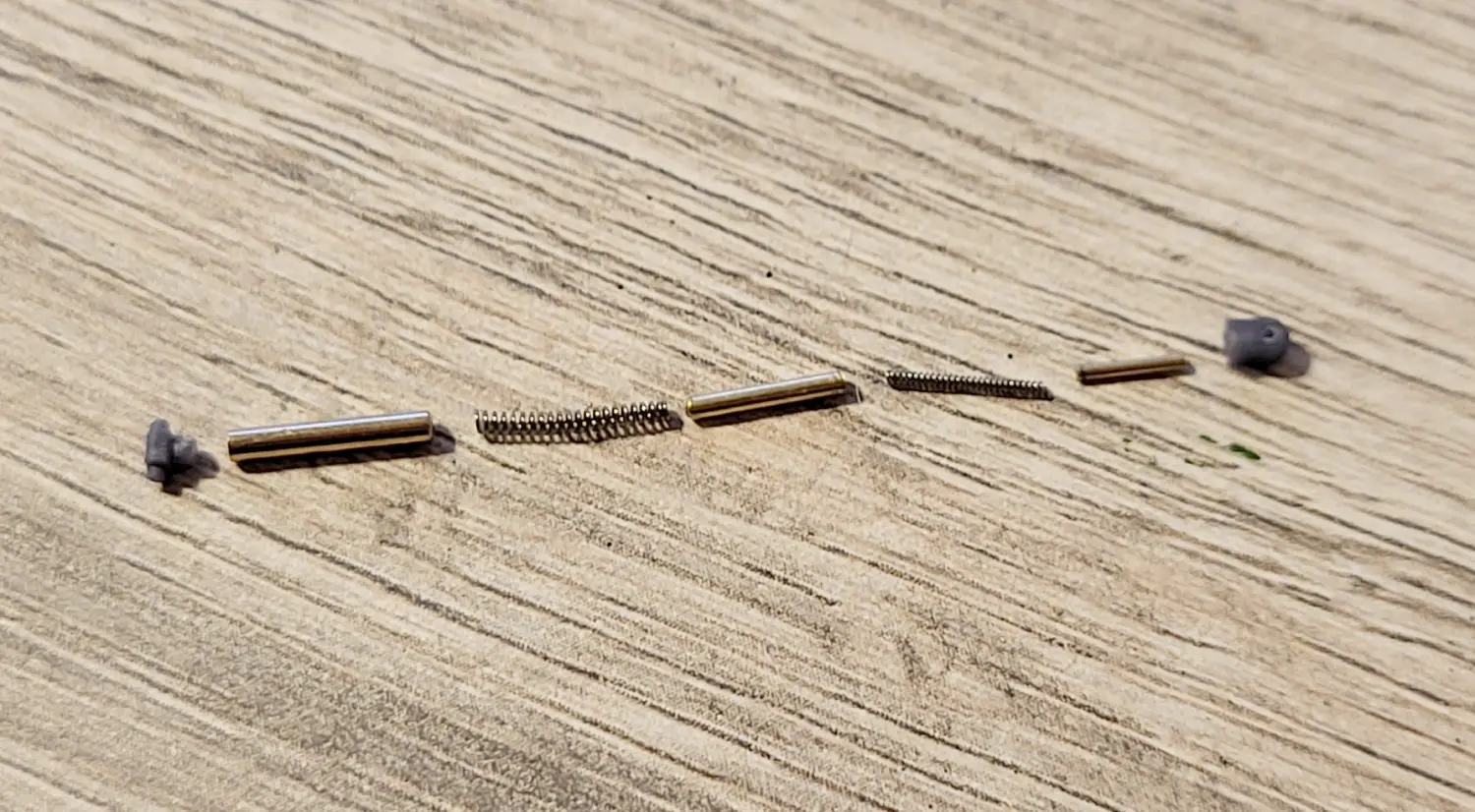 Difficult requirements for the piston - it needs to be short as pissible in compressed state and long as possible in extended state. The spring has a fixed extension coefficient (ratio of compressed and extended length), which puts limitations on possible lengths of the piston. Moreover, to improve lifting capacity, a thicker spring is needed, which causes the extension coefficient to be smaller. After testing several springs from pogo pins, I haven’t found a spring that satisfies the requirements.