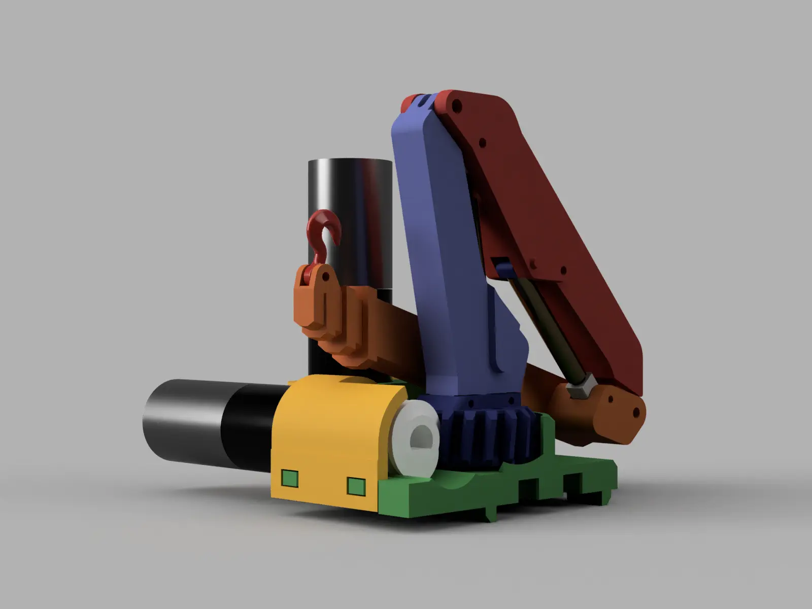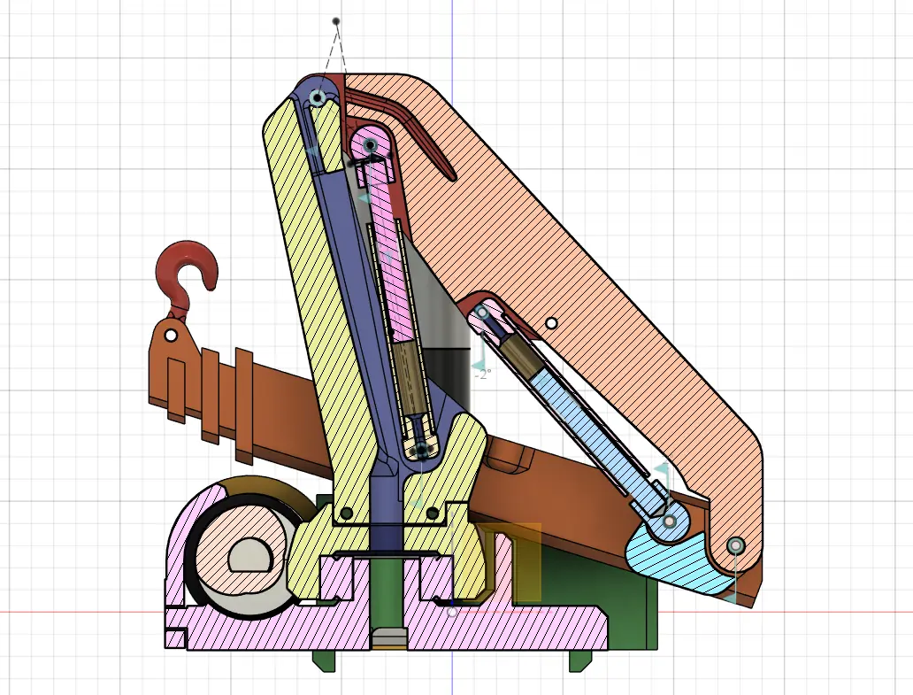 The base rotation part didn’t change a lot as it’s a rather straightforward worm drive and a bearing with lines going through center hole. Boom elevation, however, required a lot of attempts to solve and took a year in total.