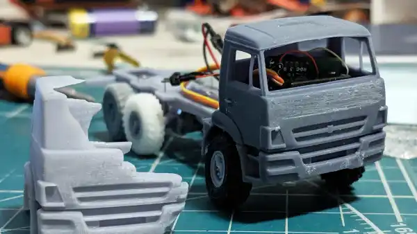 An RC all-wheel drive truck with focus on 3D printed parts instead of ready-made ones.