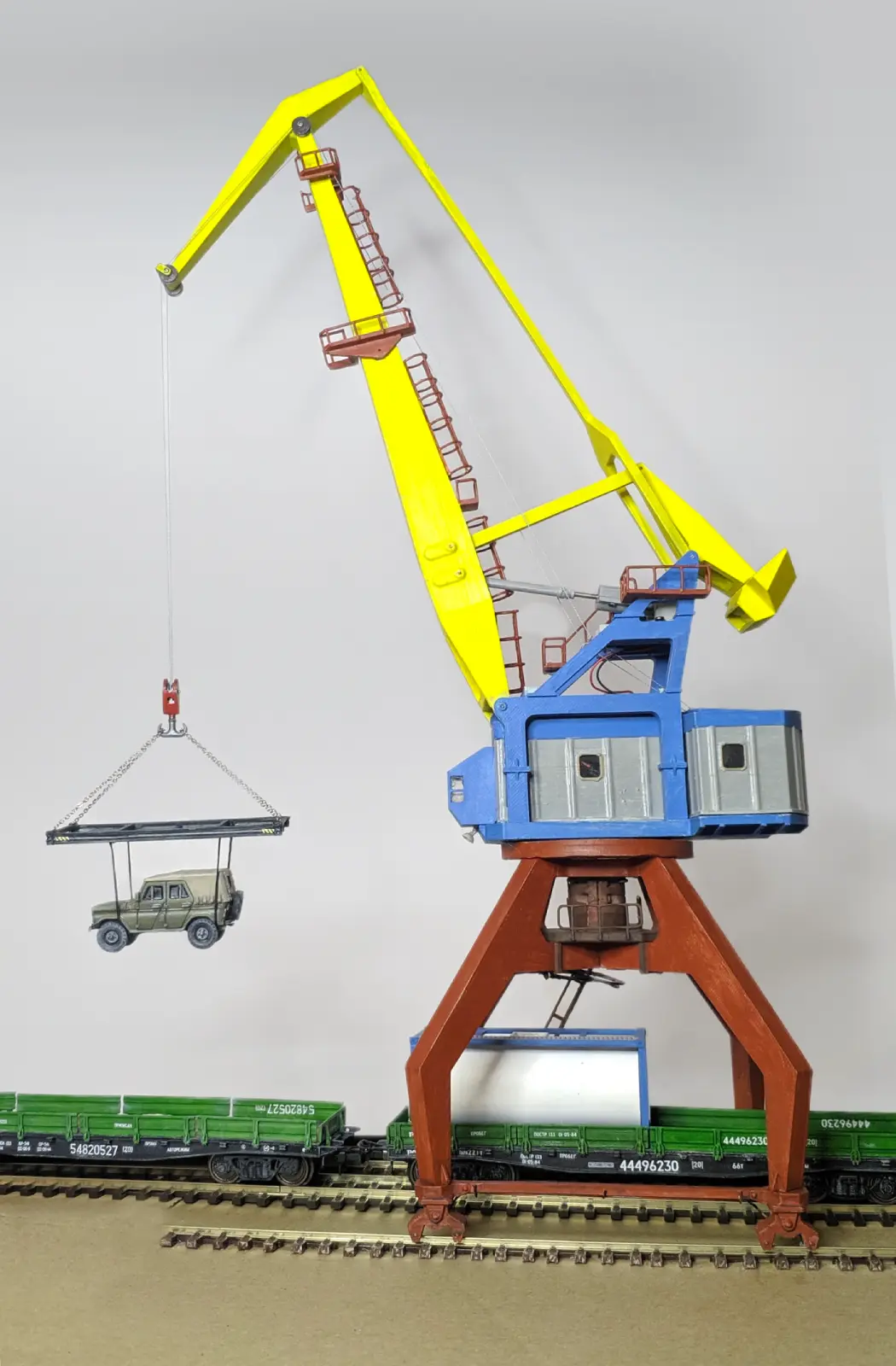 Существуют готовые модели похожих кранов, например, ROCO 40110, 41290, 41296 и другие. Они географически относятся к Западной Европе, и производят впечатление техники эпохи Первой или Второй Мировой войн.
